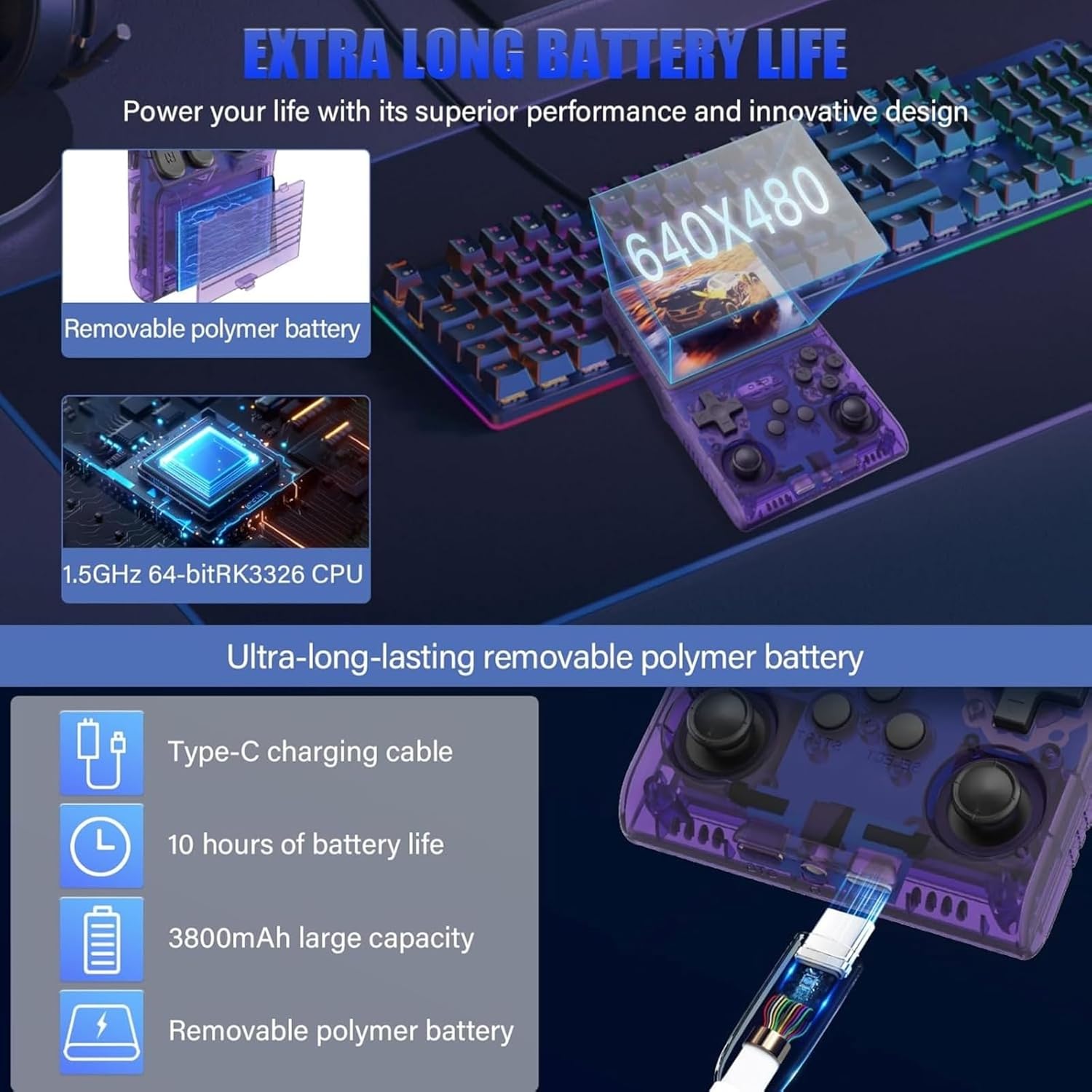 Équipée du processeur RK3326 64 bits et de 4 Go de RAM, la R36S Pro offre une expérience de jeu ultra fluide, sans latence ni bug.